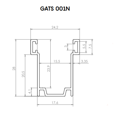 1. Guide modello GATS 001N dimensione 28 X 17.6 X 28 mm