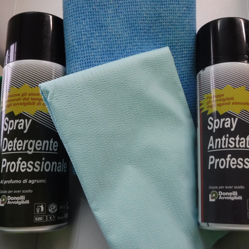 Set pulizia professionale per manutenzione avvolgibili. Attrezzi specifici per lavaggio e cura lamelle.