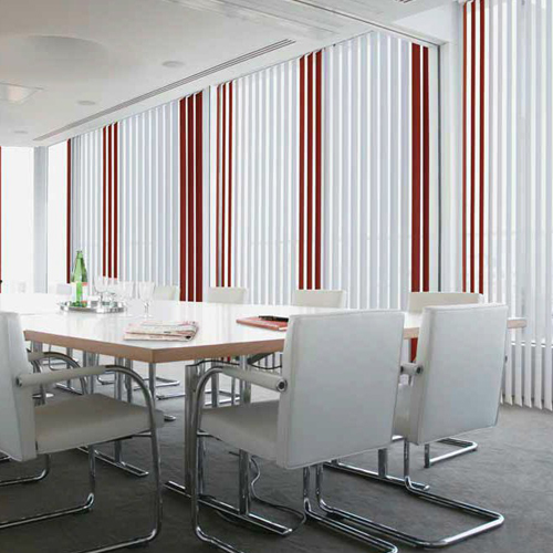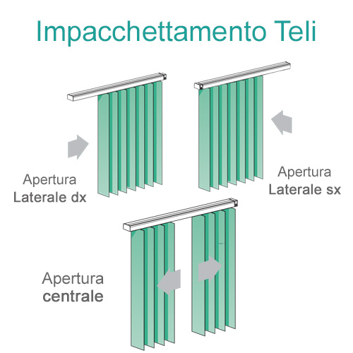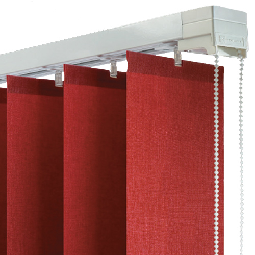 Tende con lamelle verticali dotate di doppio sistema di comando dal meccanismo compatto: apertura tramite cordino e orientamento mediante catenella.