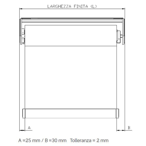N.B. Le misure indicate in fase d'ordine si intendono finite. Se non diversamente specificato durante l’acquisto, lo standard prevede l’avvolgimento del telo fronte muro (come da immagine). I prezzi si intendono compresi di IVA e per singolo pezzo. Il costo di partenza si riferisce alla dimensione minima realizzabile.