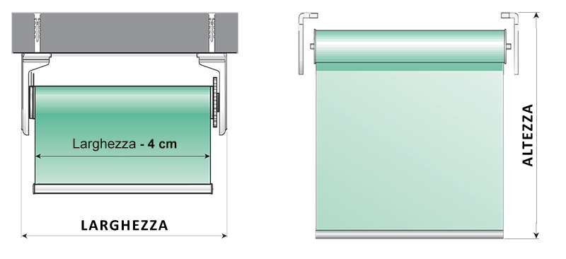 N.B. I prezzi avvolgibili a rullo indicati si intendono compresi di IVA e per singolo pezzo. Il costo di partenza si riferisce alla dimensione minima realizzabile. Le misure indicate in fase d'ordine si intendono finite. Se non diversamente specificato in fase d’ordine, lo standard della tenda avvolgibile prevede l’avvolgimento del telo fronte muro (come da immagine).