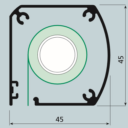 Il minimo ingombro del cassonetto permette l’montaggio diretta inoltre su porta finestra o finestra con anta a ribalta.